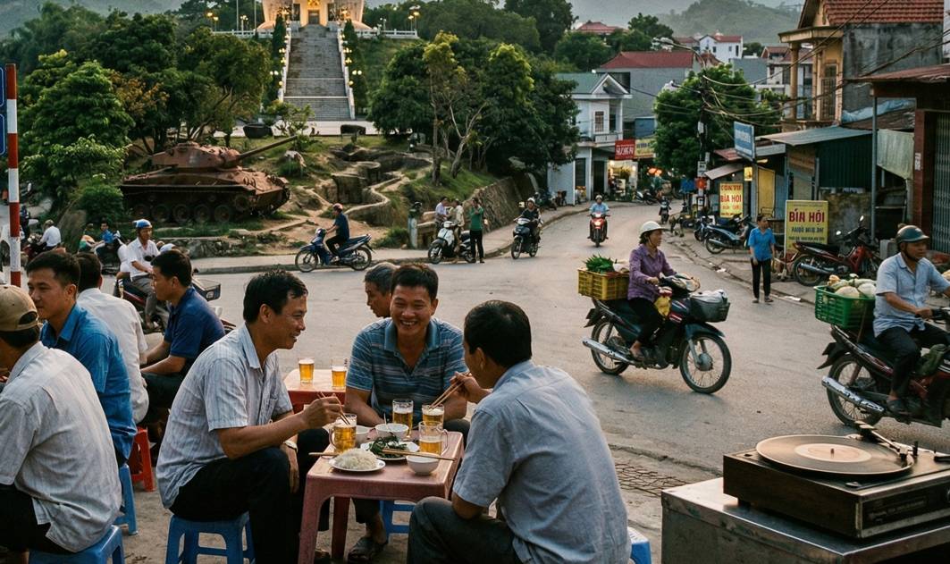 夜は5月7日通り沿いのビアホイ(地ビールの立ち飲み屋)で、地元の人に混じって飲むのが旅人の定番だ。
